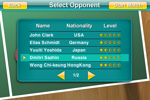 Хвалебные отзывы “знатоков”, рассказывающие о завершившихся поисках идеального тенниса дали мне необходимую смелость для совершения этой покупки, и вот игра уже у меня в телефоне. Первое, на что обращаешь внимание – все очень просто. Нет, не игровой процесс, а скорее антураж игры. Конечно, довольно трудно сделать из пинг-понга что-то яркое и особенное, но все равно меню выглядит скучновато, нет даже музыки.