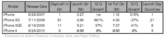 Аналитики уже сделали прогноз, что в последнюю неделю июня по всему миру будет продано 9.5 млн iPhone 4. Напомню, при запуске 3GS в первые три дня разошлось всего 1 млн трубок. Кстати, посмотрите на статистику продаж: