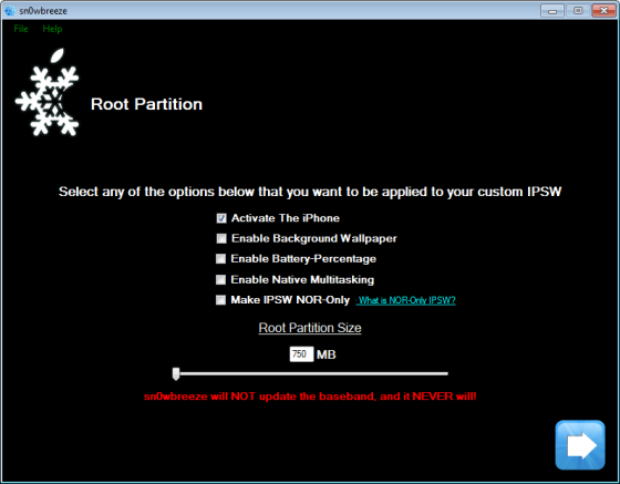Что мне уже нравится в этой программе, так это то, что можно включить в кастом прошивку отдельно обои, а отдельно многозадачность. Многие пользователи уже убедились, что джейлбрейк на 3G, добавляющий в функционал неофициально обои и многозадачность, приводит к проблемам с производительностью телефона.