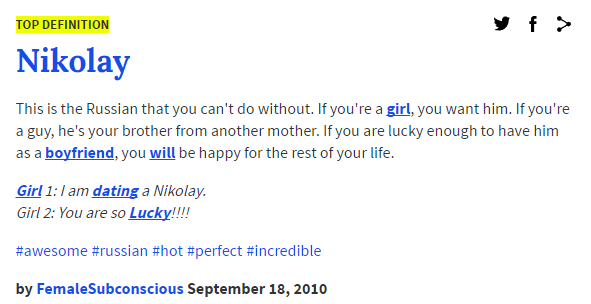 Правда, словарь не всегда правильно определяет пол человека. К примеру, Никиту он считает девушкой, увы. Или мы просто чего-то не знаем?