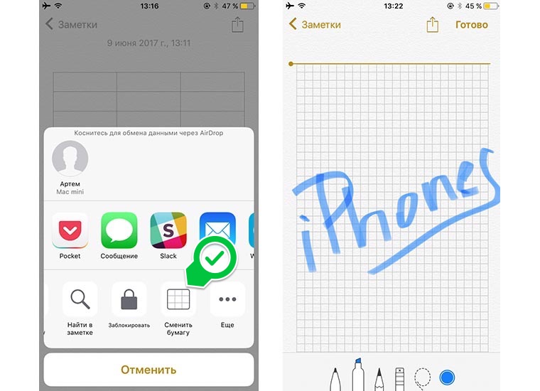 Другим полезным нововведением стандартных заметок является возможность создания простых таблиц. Пиктограмма добавления находится на панели над клавиатурой, а для добавления строк/столбцов нужно вызывать контекстное меню.