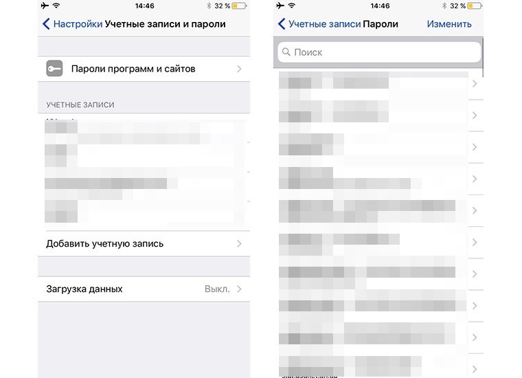 Такое меню появилось в главном списке настроек. В нем можно управлять добавленными учтёнными записями и просматривать сохраненные пароли (доступ по Touch ID).