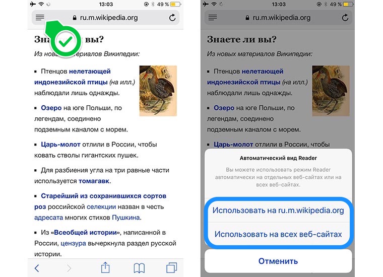 Полезнейшая фишка Safari – режим чтения, стала еще лучше. Теперь можно включить такой режим отображения автоматически для всех сайтов или для избранного ресурса.