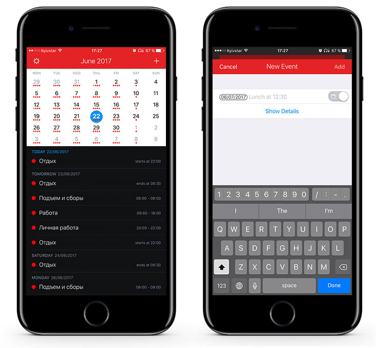 Навороты интерфейса скорее напрягают, чем улучшают опыт использования — стандартный календарь от Apple ничуть не хуже. Единственным реальным преимуществом для меня стала дополнительная цифровая строка над клавиатурой, но такая мелочь не оправдывает потраченных средств. Хотя темное оформление тоже радует.