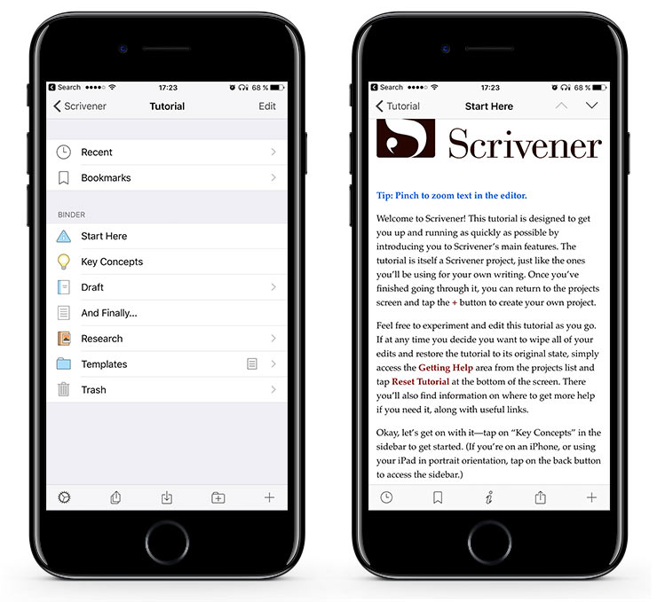 А это особенный случай в моем списке — формально, претензий к приложению нет, но стоит предостеречь вас от покупки. Scrivener это супер-серьезный текстовый редактор, в котором можно написать и заверстать книгу.