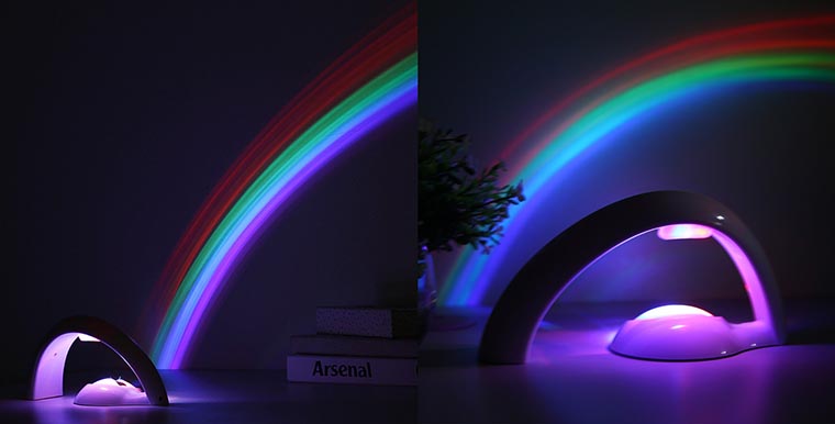 Этот ночник создает красивое свечение в темной комнате, которое напоминает радугу после дождя. Можно переключаться между разными режимами и интенсивностью свечения.