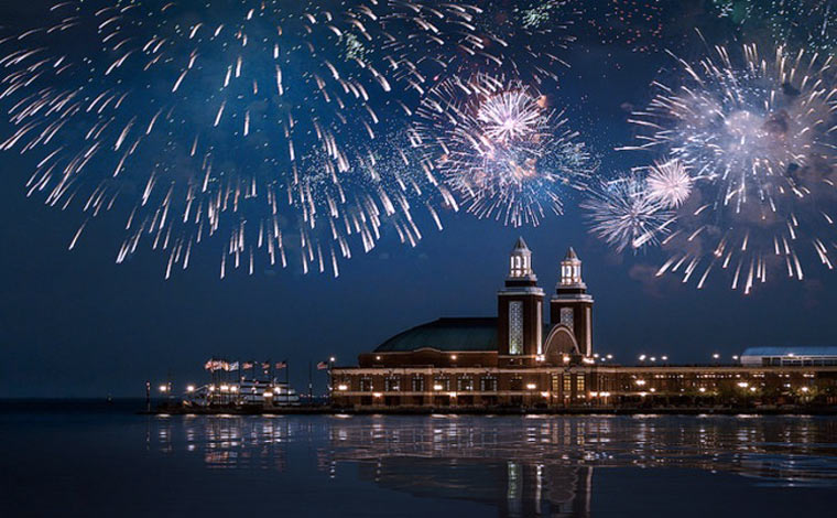 Не менее красивую картину увидели жители Чикаго над берегом озера Мичиган. Без салюта в этот день не обходится ни один американский населенный пункт.
