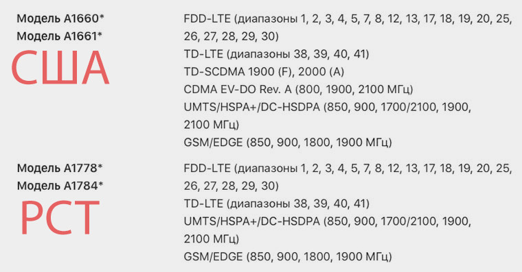 Ситуация схожа с iPhone SE. Модели A1549 и A1522 не поддерживают работу в LTE Band 38, на этой частоте работают операторы МТС и Мегафон. Такие устройства смогут выходить в сеть лишь по 3G либо придется менять оператора.