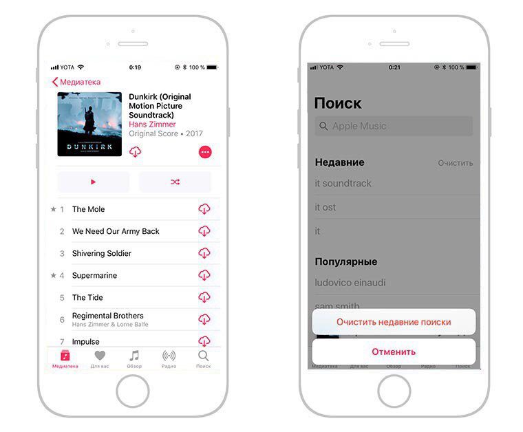 В закладке «Поиск» в Apple Music появилась очистки истории.