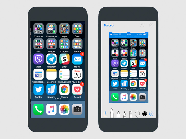Когда делаете скриншот, его миниатюра появляется в нижнем левом углу экрана. При нажатии на нее открывается дополнительное меню для работы со снимком экрана и отправкой его куда-либо.