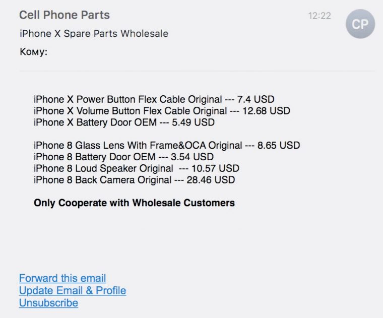 Китайские умельцы уже готовы отремонтировать новый флагман Apple. На нашу почту пришли расценки на оптовую закупку запчастей для iPhone X.