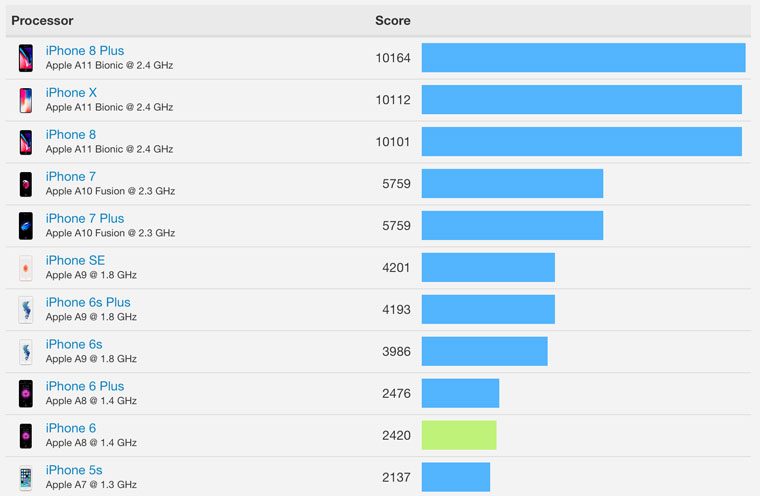 - iPhone 6s Plus и SE на 96% быстрее iPhone 5s;