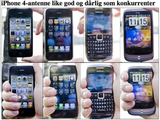 После серии сравнительных тестов iPhone 4 и пары гаджетов от HTC и Nokia, самая крупная газета Норвегии, VG, заключила — дизайн антенны «четвёрки» не мешает комфортно использовать телефон. Тесты проводились в зоне покрытия норвежского оператора Telenor.