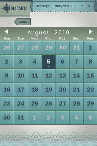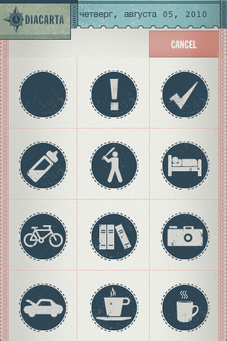 Конечно, iPhone может быть очень мощным органайзером. Но дело в том, что ведение классического ежедневника, в котором я мог бы планировать свои дела, слишком скучное занятие. Именно здесь приходит время упомянуть, наконец, виновника статьи — приложение Diacarta. Очевидно, что оно представляет собой некий планировщик событий, но выполнен он в необычном стиле.