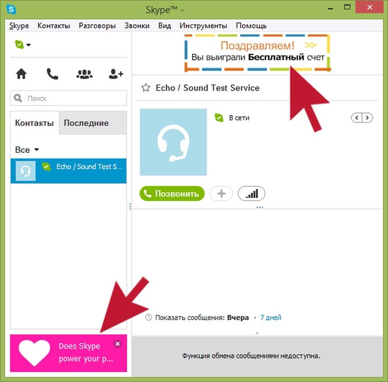 5. Постоянная реклама в Skype