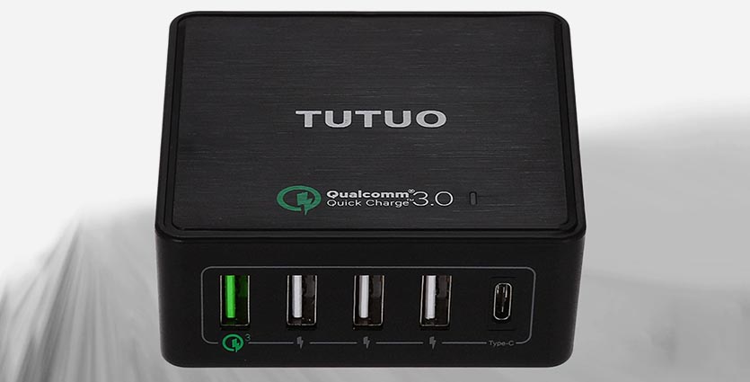 Универсальный сетевой адаптер с пятью портами. Есть три обычных USB для зарядки, которые выдают 2.4А, один порт с поддержкой быстрой зарядки Quick Charge 3.0 и один Type-C для зарядки ноутбуков.