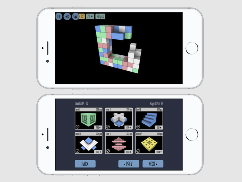 Необычная интерпретация головоломок 3 в ряд, которую перенесли в 3 измерения. Она открывает вам объемную фигуру, которая состоит из отдельных кубиков. И ваша задача — убирать элементы одинакового цвета и зарабатывать таким образом баллы.