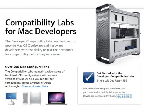 До этого только члены Apple Developer Connection (ADC) могли попасть в лаборатории, чтобы тестировать свои программы на различных конфигурациях Mac. Но ранее в этом году Apple изменила свои планы на ADC и переименовала ее в Mac Developer Program, добавив к этому сниженную входную плату в $99. Раньше же разработчикам приходилось платить от $499 до $3499 за право состоять в Apple Developer Connection.