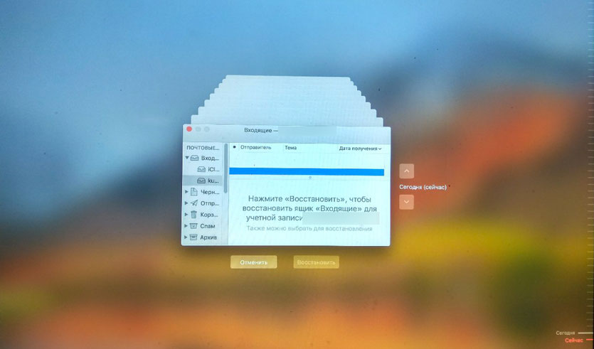 Выход – Time Machine. С его помощью можно быстро найти нужное вложение, письмо, контакт или документ.