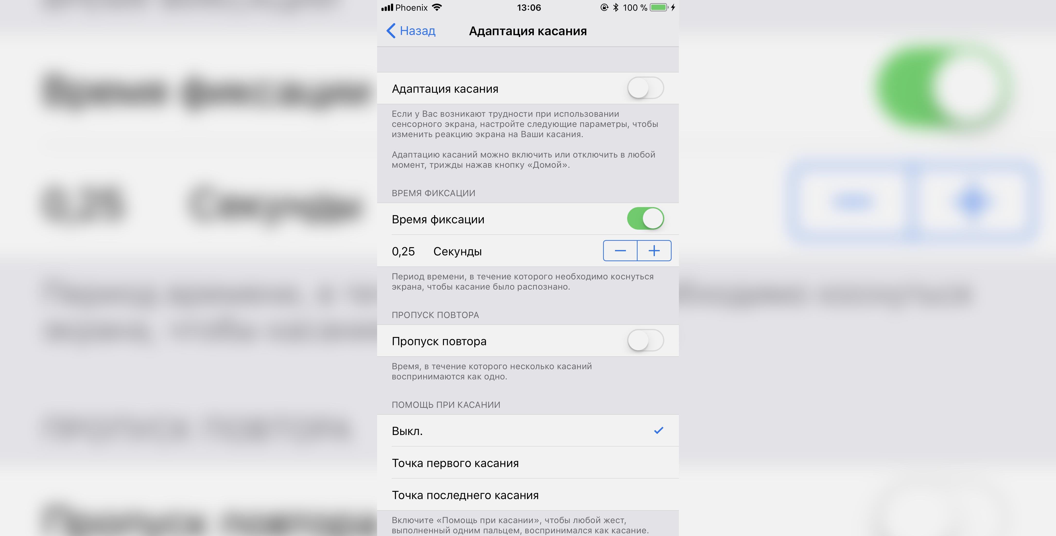 Где найти: Настройки – Основные – Универсальный доступ – Адаптация касания.