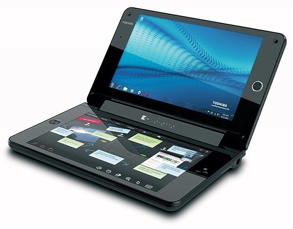 Еще в 2005 году Toshiba удивила общественность сверхкомпактным лэптопом Libretto U100 с 7,2-дюймовым ЖК-дисплеем, а ведь в те времена нетбуков еще не было и в проекте. Теперь же она решила убить сразу несколько зайцев одним выстрелом: возродить неординарный проект, попробовать конкурировать с iPad и при этом не пытаться «воевать» на планшетном в поле, которое Apple уже давно подмяла под себя. То есть выпустить некий гаджет на базе полноценной ОС, который бы не копировал функциональность яблочного продукта, но мог предложить не менее интересные возможности. В итоге появился Libretto W100.