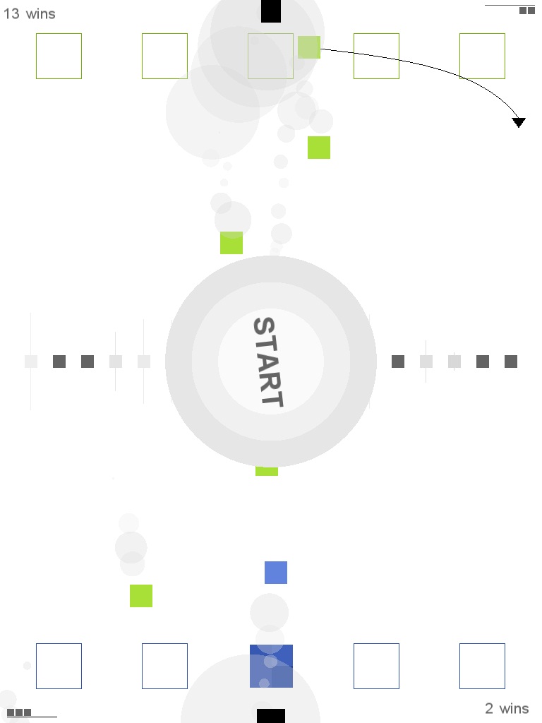 В итоге соперникам приходится балансировать между атакой и обороной. Уйти в глухую защиту невозможно, так как в этом случае вы быстро лишитесь боеприпасов, тогда как противник будет собирать их в середине поля. Управлять снарядом нужно спокойно, так как если слишком разволноваться и вывести палец из «зоны контроля», то вы потеряете власть над его траекторией.