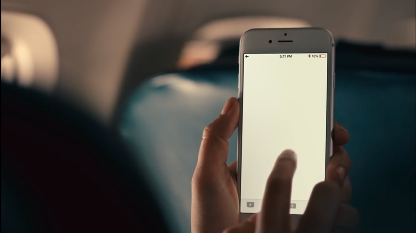 В видео показывается небольшая история девушки, которая летит в самолете к своей сестре. И у неё постоянно происходят какие-то баги в работе iOS 11.2.6 на iPhone 6.