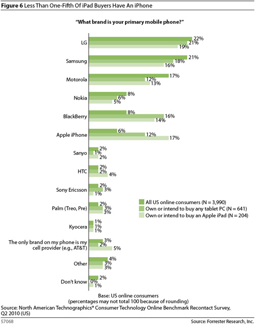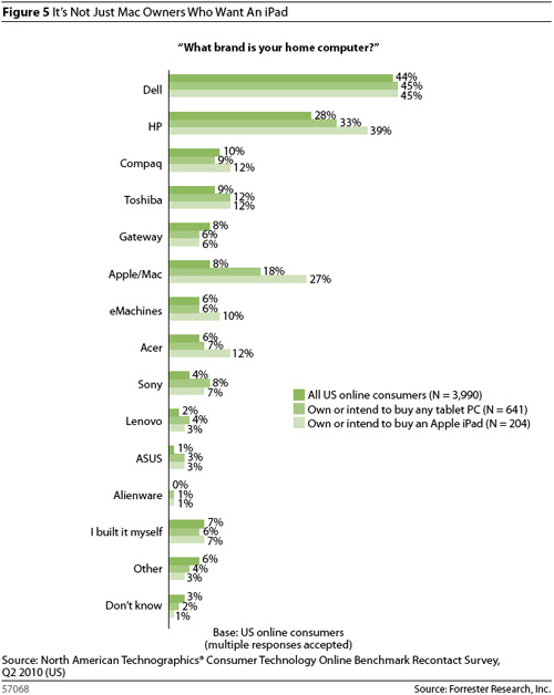 Забавно, что среди американцев вообще мало кто знает о том, что существуют (или планируют начать это делать ближе к концу 2010 года или началу 2011) какие-то планшеты помимо iPad – всего 10%. Причем даже среди этих людей мало кто способен был назвать определенного конкурента, хотя некоторые упоминали о JooJoo или Archos 7, а часть говорила об устройствах, еще не поступивших в продажу, вроде HP Slate.