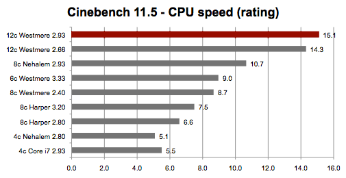 Как видите, разрыв между 8-ядерной и 12-ядерной есть, и довольно немалый. Но не стоит забывать, что не все программы способны «нагрузить» 12 и даже 8 ядер процессора настолько, насколько это делают бенчмарки наподобие использованного здесь Cinebench. Разница в производительности в повседневных задачах может быть намного ниже.