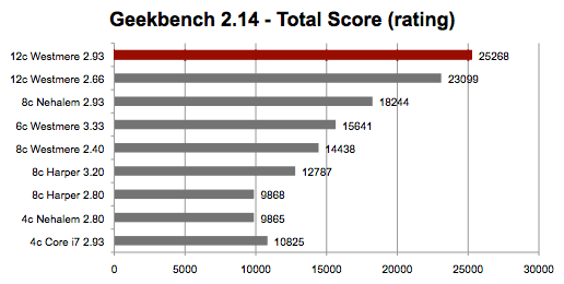 И теперь самое главное — общий бенчмарк с помощью программы Geekbench всей линейки Mac Pro: