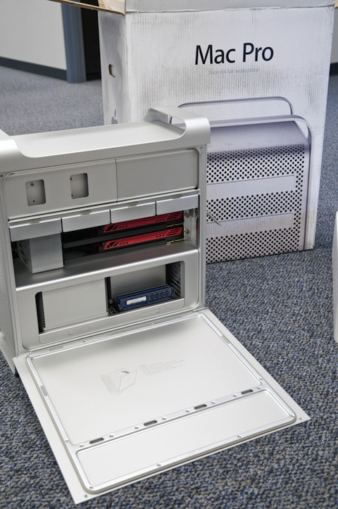 Как мы и обещали, сегодня рано утром первые счастливчики получили на руки тяжелую (18 килограмм!) коробку с новым 12-ядерным Mac Pro. Как водится в таких случаях, компьютер был сфотографирован со всех возможных сторон, все самые «вкусные» внутренности извлечены для изучения, а затем все это великолепие в собранном виде «прокатилось» по нескольким тестам производительности. Осторожно: много изображений.