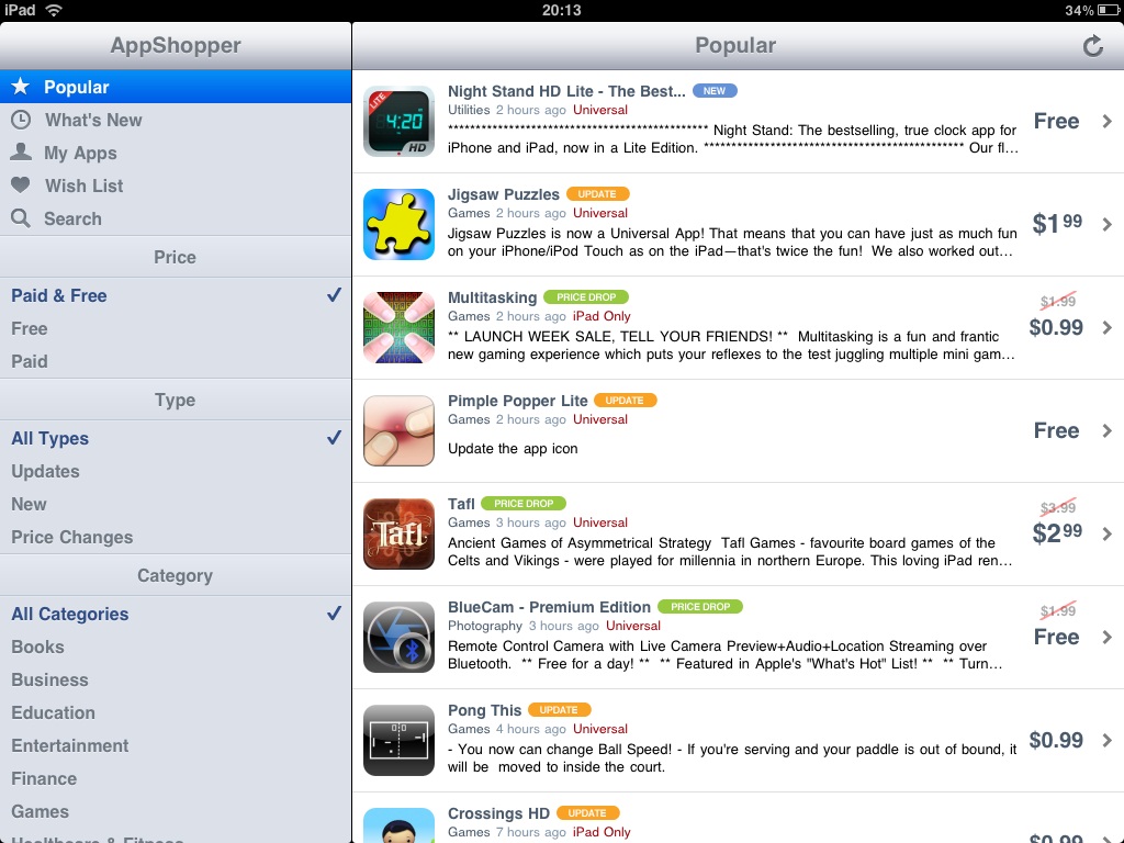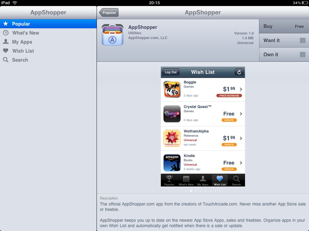 Несмотря на то, что мы стараемся всегда держать вас в курсе массовых распродаж и скидок на заслуживающие внимания приложения, о вкусах, как говорится, не спорят. Чтобы узнать о снижении цен на интересующие игры и программы из первых рук, многие посещали портал AppShopper.com. И вот теперь он обзавелся своим собственным бесплатным приложением, которое, к тому же, универсально для iPhone и iPad.