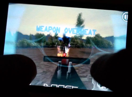 Управление мотоциклом осуществляется за счет акселлерометра, внизу по бокам расположены гашетки пулемета и лазера, по центру находится кнопка ускорения с помощью закиси азота. Наверху располагается количество жизней, а слева и справа датчики перегрева оружия. Вот и все, что нужно знать, чтобы начать играть.