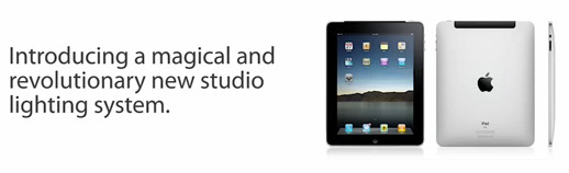 Американский фотограф Джесси Ростен (Jesse Rosten) придумал оригинальный способ привлечь к себе внимание потенциальных заказчиков. Он собрал из девяти айпэдов студийный свет и провел фотосессию.