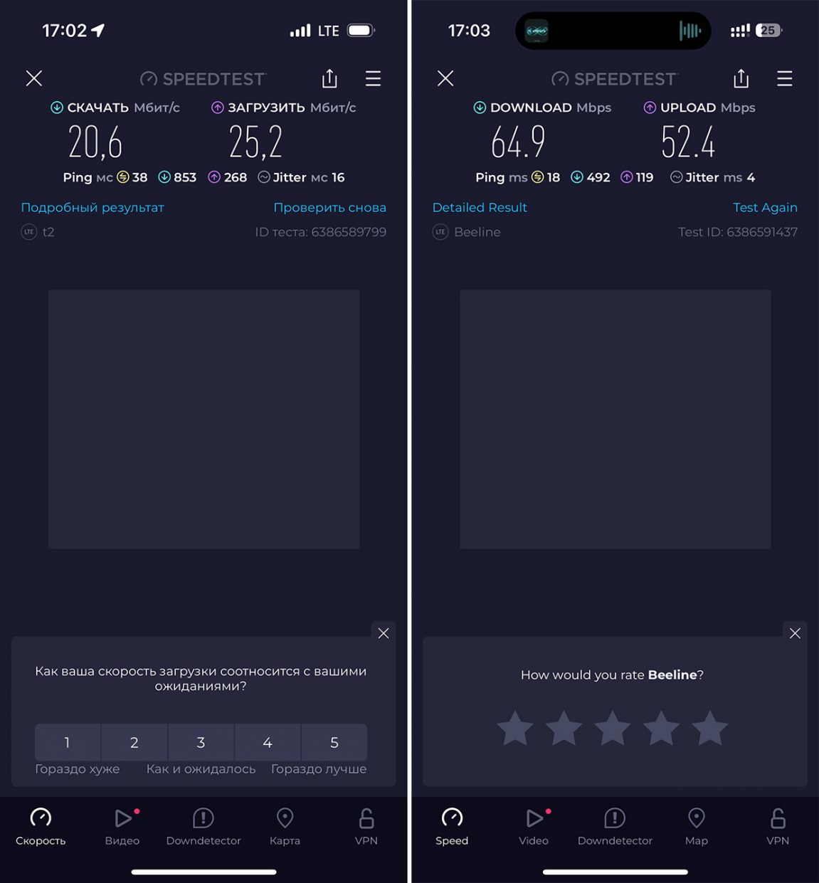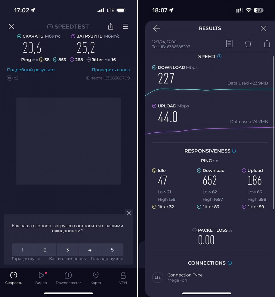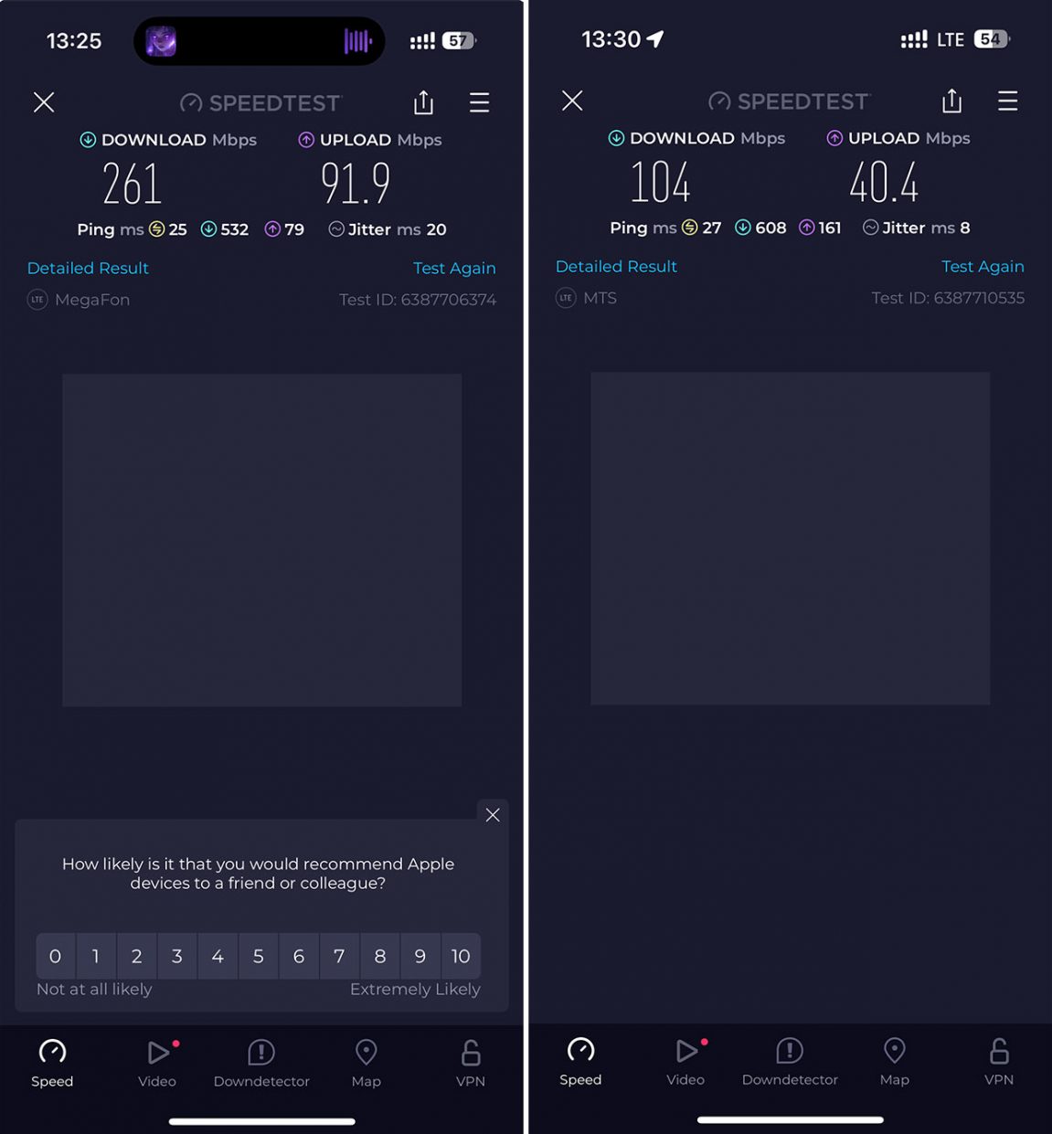 Чем тестировали: использовался известный сервис Speedtest.net от OOKLA, который доступен бесплатно в App Store.