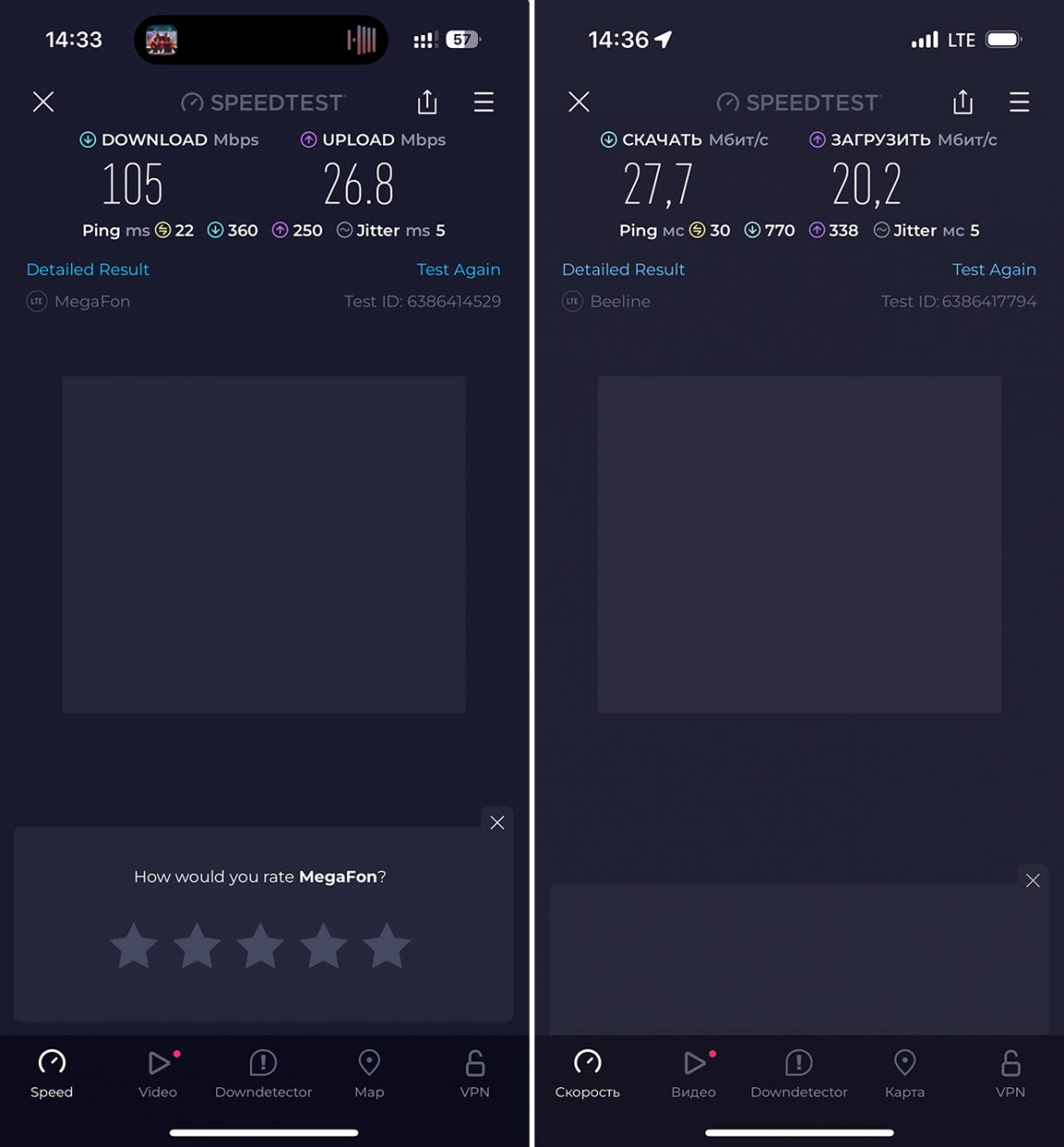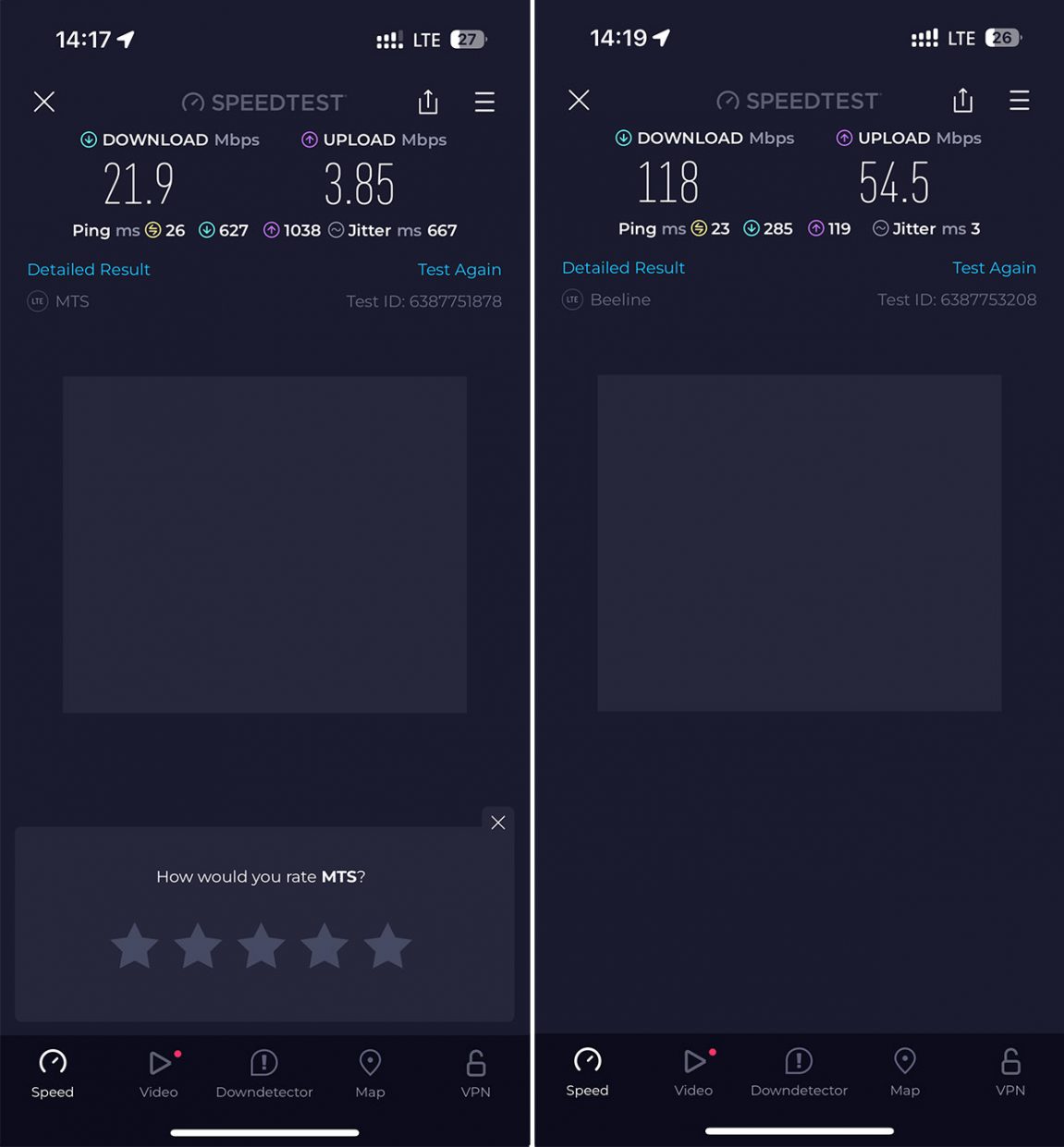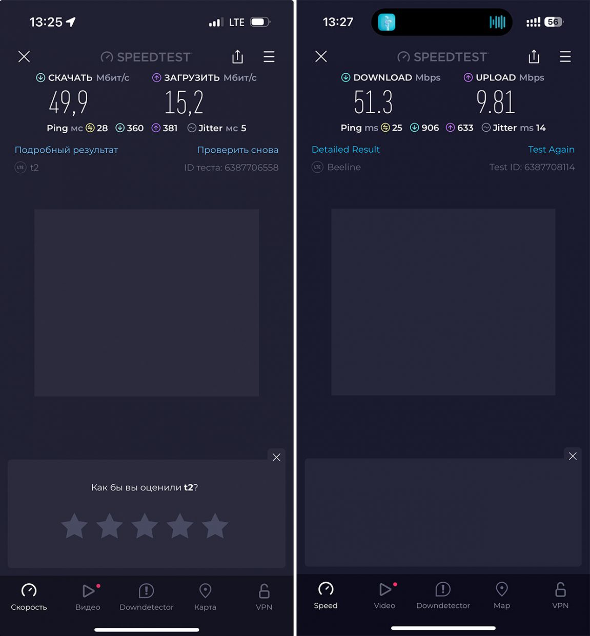 Чем тестировали: использовался известный сервис Speedtest.net от OOKLA, который доступен бесплатно в App Store.