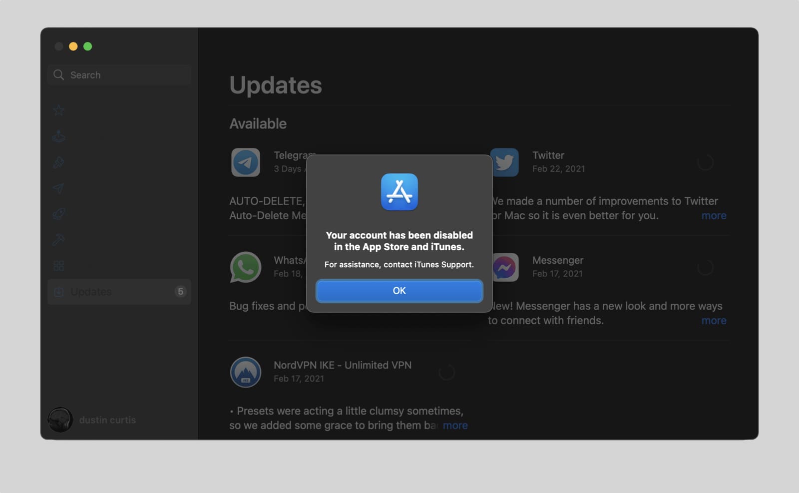 В конце февраля Кертис решил обновить приложения в Mac App Store и увидел странное уведомление.
