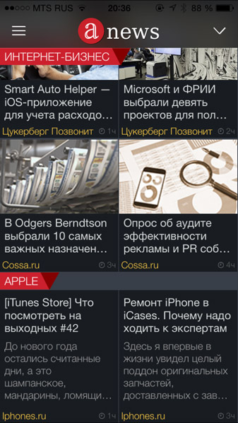 Сергей: Anews я пользуюсь практически с первых версий. В нём мне понравились подписка на несколько интересующих меня изданий и мгновенный просмотр новостей с любого из моих девайсов – iPhone 6+, Samsung Note 4 или из браузера моего ноутбука. Всё работает молниеносно быстро – а значит, мне подходит.