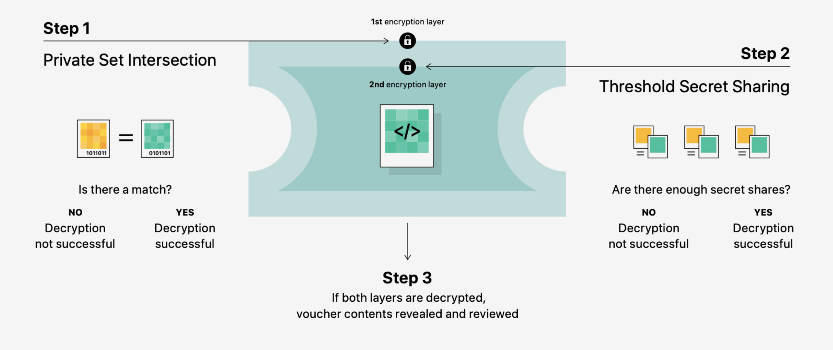 Это алгоритм раскрытия данных изображений при превышении порога сработок CSAM. Источник: Apple
