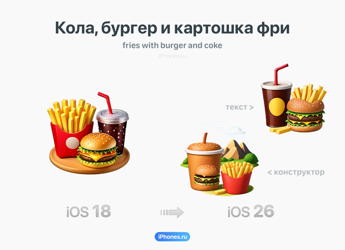 Если при создании эмодзи в iOS 26 указать эмодзи картошки фри, то в результатах часто будут горы.