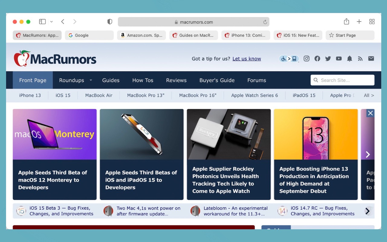 В третьей бета-версии macOS Monterey изменился дизайн Safari.