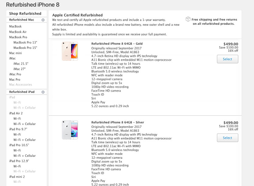 Спустя год после анонса iPhone 8 и iPhone 8 Plus, Apple добавила обе модели в раздел Refurbished.