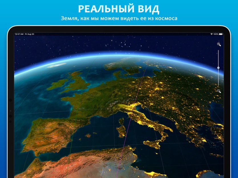 Приложение содержит в себе большое количество увлекательных фактов и полезной информации о нашей планете. Рельефная модель Земли, смена дня и ночи с огнями городов, звездное небо, более 2600 географических объектов, 500 мировых достопримечательностей и 2100 фотографий, 15–кратный зум и много других увлекательных функций.