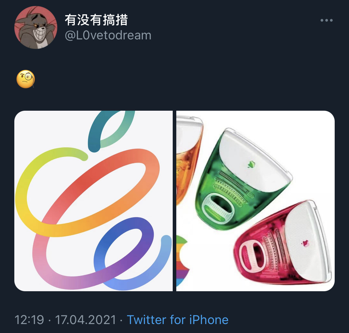 Он опубликовал логотип презентации 20 апреля и разноцветные iMac G3. Судя по этому, купертиновцы готовятся к анонсу iMac нового поколения в разных цветах.