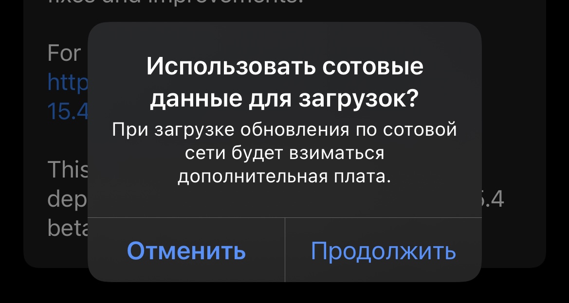 Теперь обновлять операционную систему можно по сотовой сети, Wi-Fi для этого не требуется. При попытке загрузить апдейт система предупреждает, что за это может браться дополнительная плата от оператора.