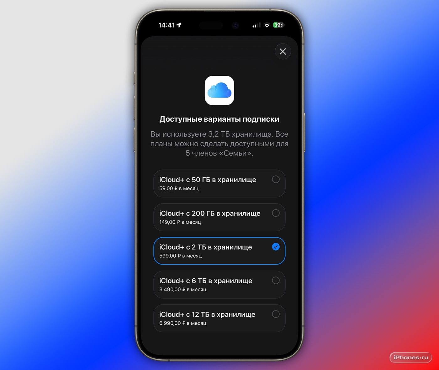- iCloud+ 6 ТБ: 3490 руб. → 4190–4290 руб.