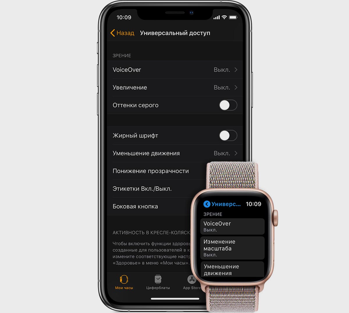 Опция находится по пути Настройки – Универсальный доступ – Уменьшение движения. Фишку можно включить и через iPhone (Watch – Универсальный доступ – Уменьшение движения).