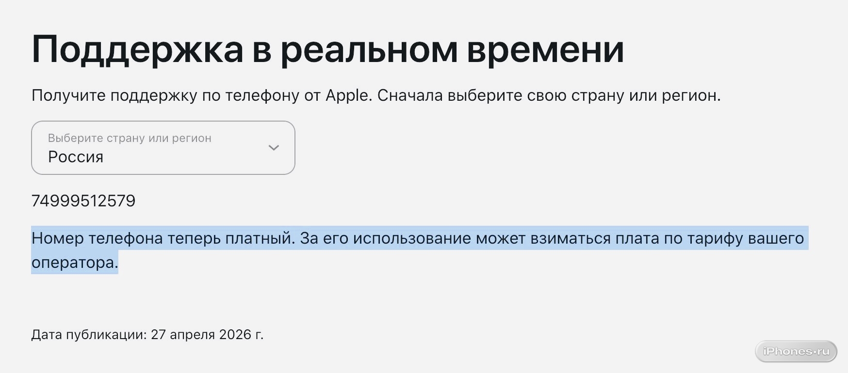 Позвонить в техническую поддержку Apple в России бесплатно больше не получится, выяснила редакция iPhones.ru.