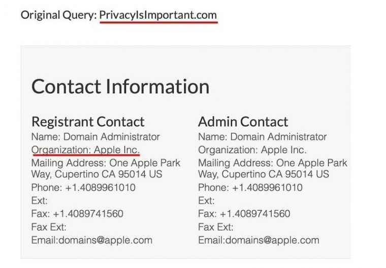 Apple стала владельцем домена PrivacyIsImportant.com. Об этом свидетельствуют записи WHOIS, обнаруженные MacRumors.