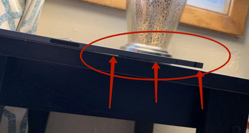 Лучший способ проверки такого искривления — положить гаджет на стол. Деформированный планшет выглядит так:
